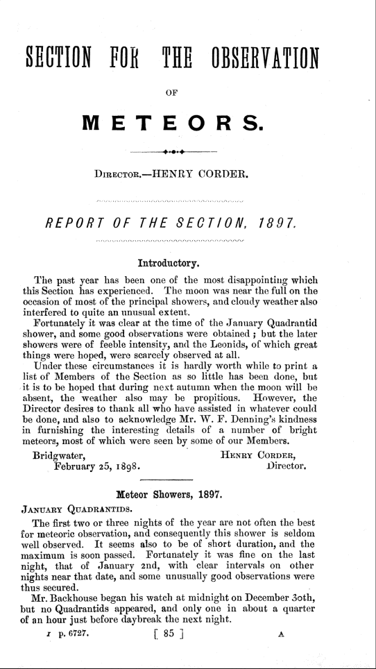 BAA Memoirs: reports of the Meteor Section (1897) Vol. VII, Part I.