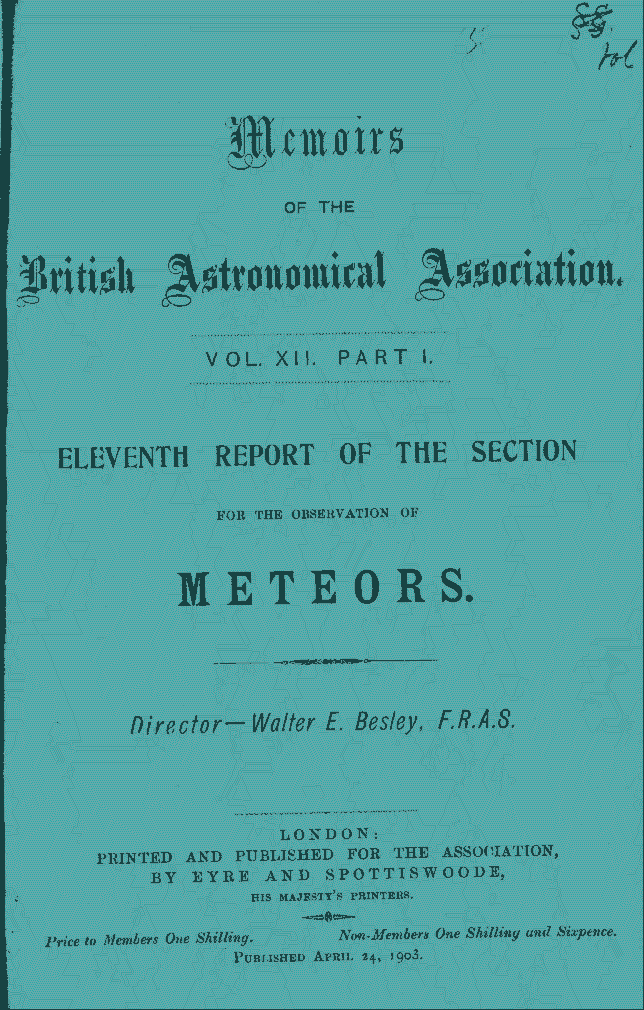 BAA Memoirs: reports of the Meteor Section (1902) Vol. XII, Part I.