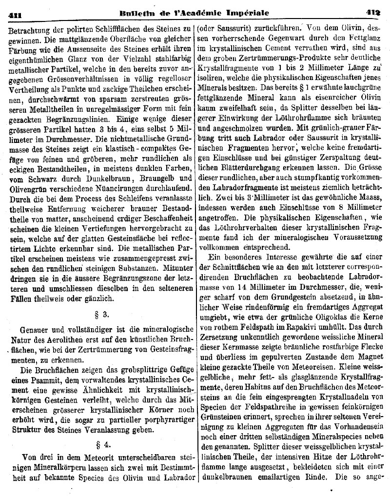 Über einen bei Stawropol gefallenen Meteorstein, voh H. Abich.