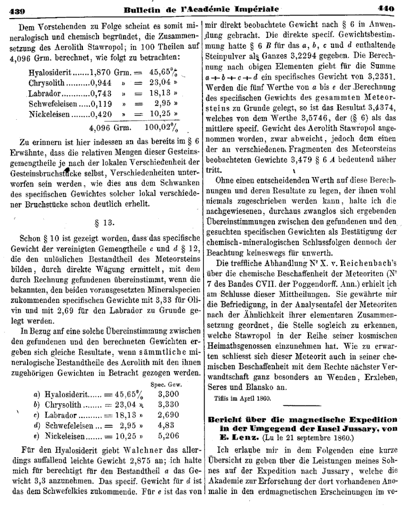 Über einen bei Stawropol gefallenen Meteorstein, voh H. Abich.
