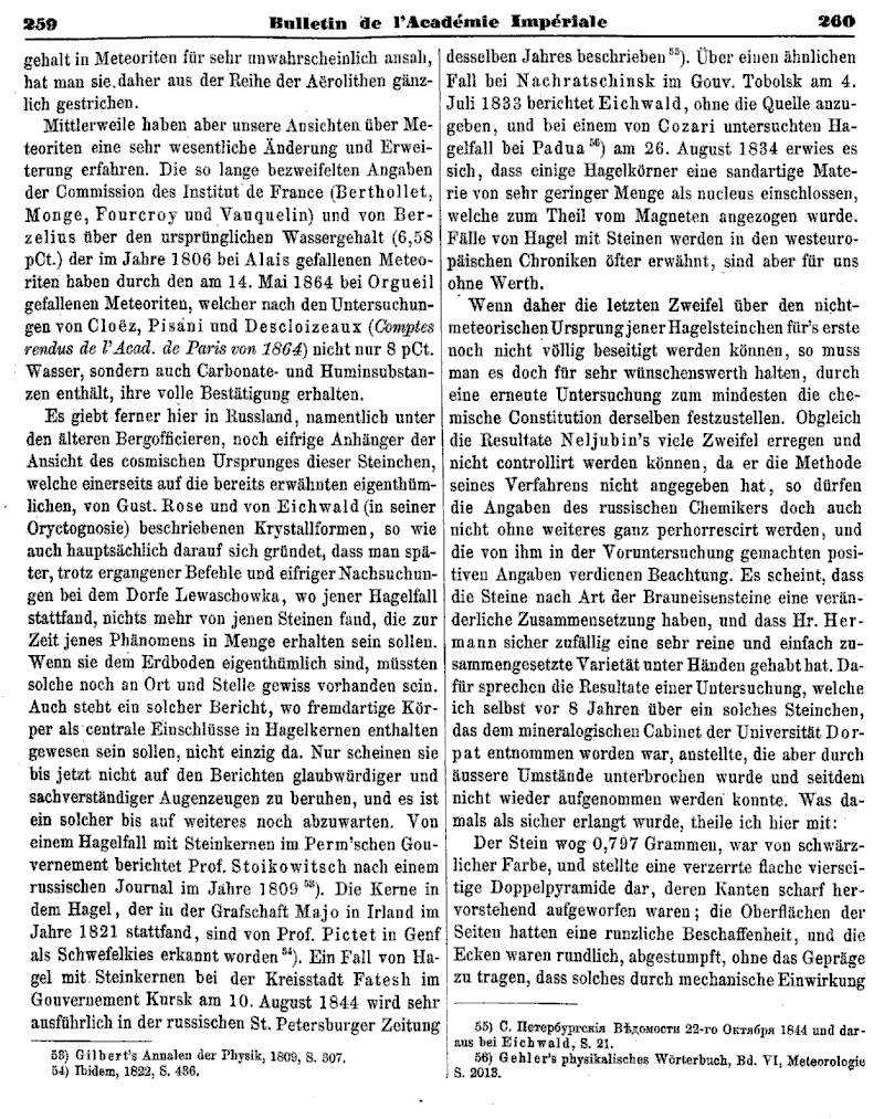 Kritische Übersicht der im Besitze der Kaiserlichen Akademie der Wissenschaften befindlichen Aërolithen, von Ad. Goebel.