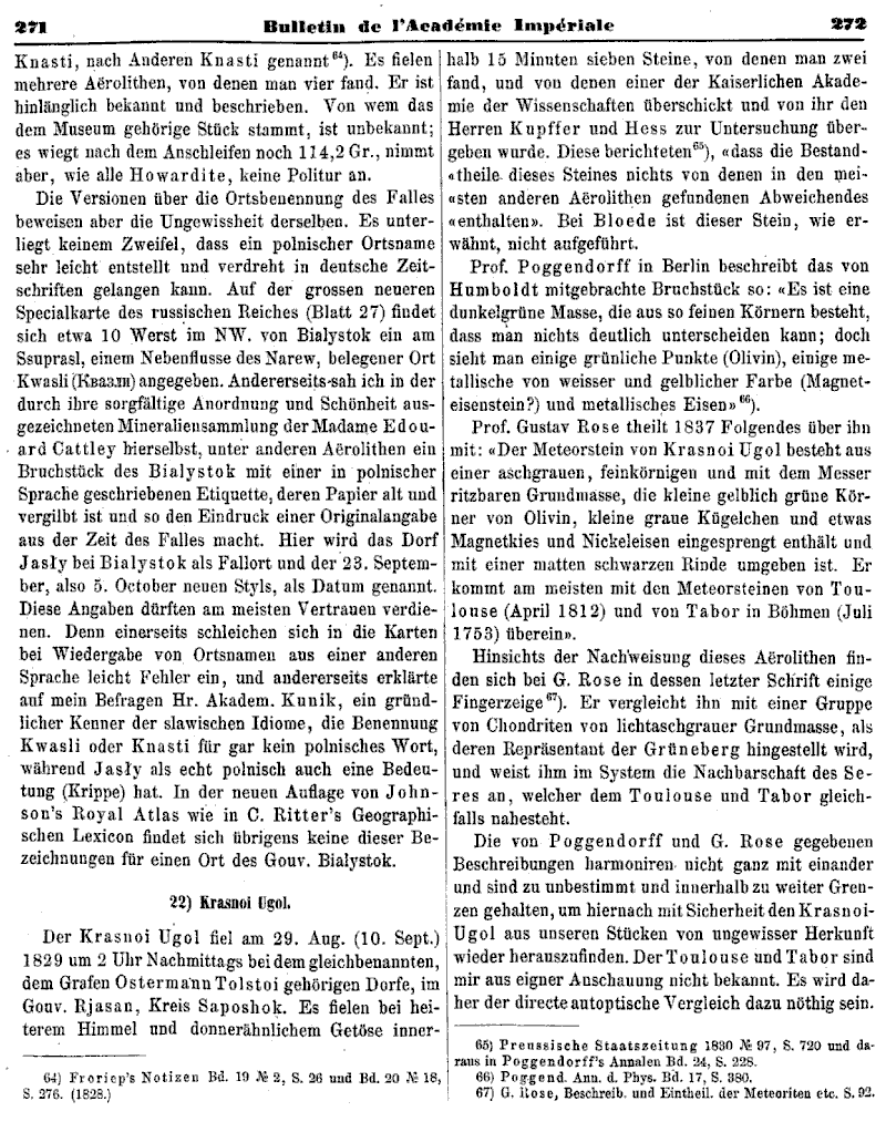 Kritische Übersicht der im Besitze der Kaiserlichen Akademie der Wissenschaften befindlichen Aërolithen, von Ad. Goebel.