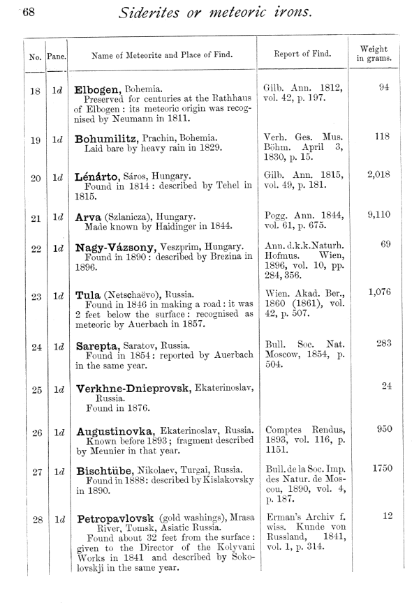 An introduction to the study of Meteorites with a list of the meteorites represented in the collection by L. Fletcher