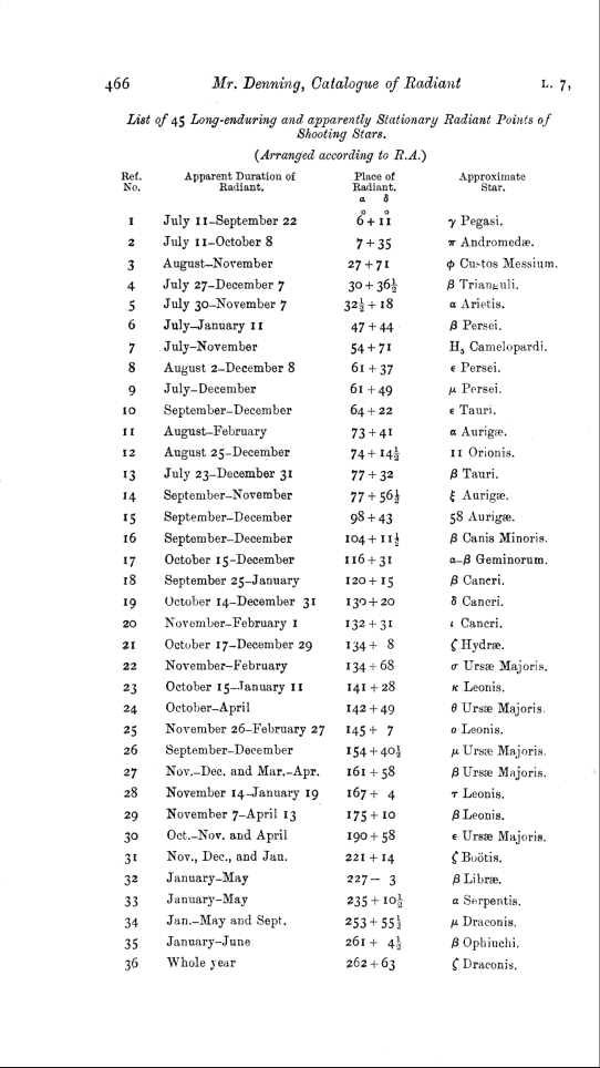 Catalogue of 918 radiant points of shooting stars observed at Bristol by W. F. Denning.