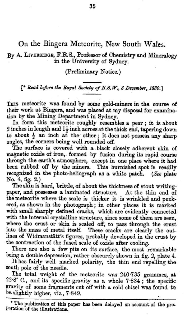 On the Bingera Meteorite, New South Wales. By A. Liversidge
