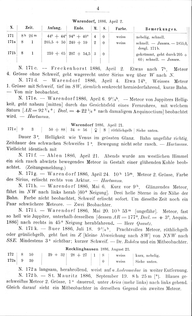 Zweites Verzeichniss von Meteorbahnen. Herausgegeben von J. Plassmann. (1891)