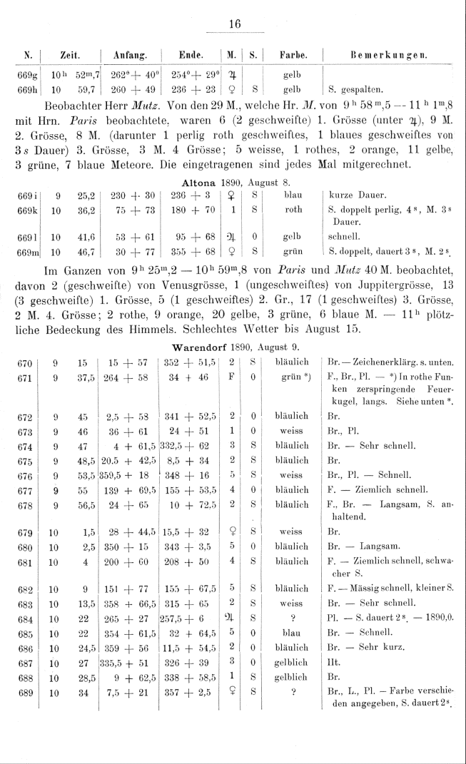 Zweites Verzeichniss von Meteorbahnen. Herausgegeben von J. Plassmann. (1891)