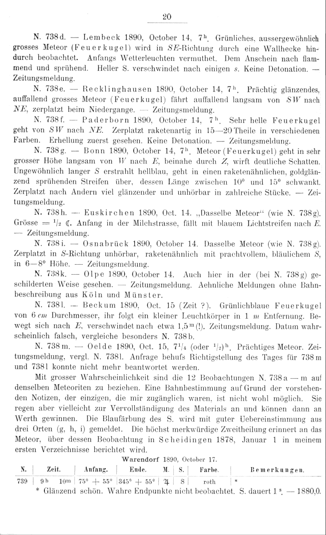 Zweites Verzeichniss von Meteorbahnen. Herausgegeben von J. Plassmann. (1891)
