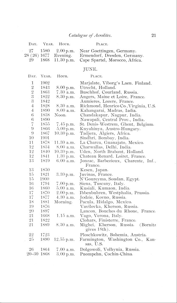 Catalogue of Aerolites to date by W. H. S. Monck, F.R.A.S. (1904)