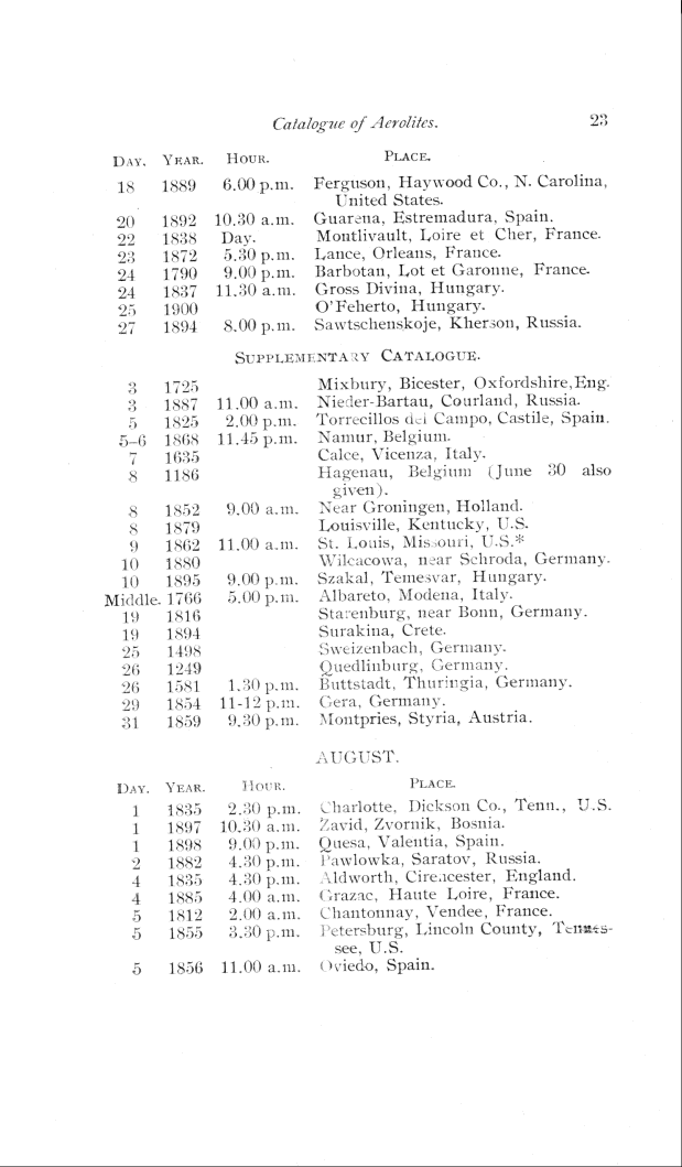 Catalogue of Aerolites to date by W. H. S. Monck, F.R.A.S. (1904)