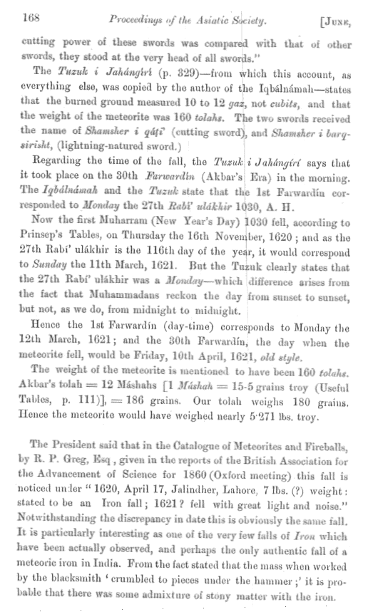 Note on the fall of a meteorite at Jullunder, in April A.D. 1621