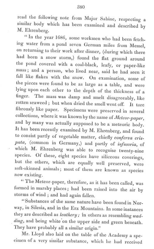 Notice of a meteor paper, found at various locations
