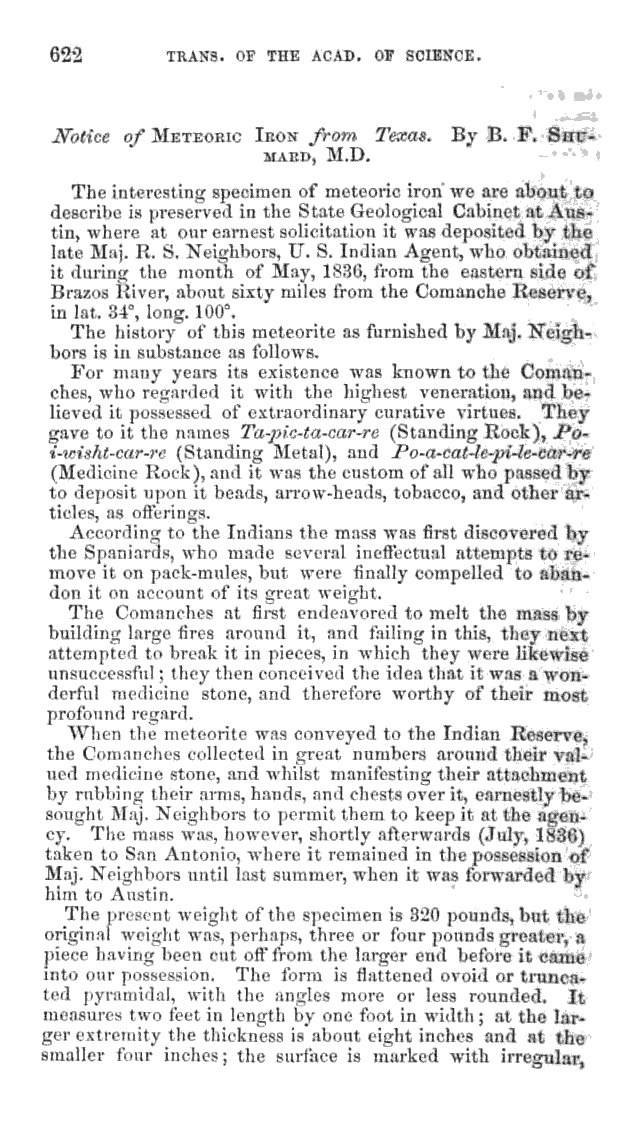 Notice of Meteoric Iron from Texas. By B. F. Shumard