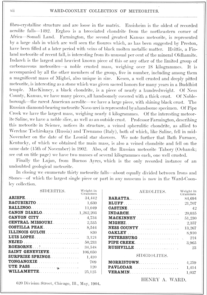 The Ward-Coonley collection of Meteorites (1904 edition) by H. A. Ward