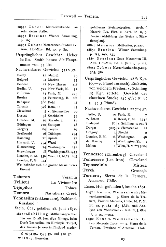 Listing/Inventory of meteorites in alphabetical order