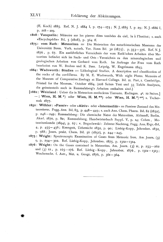 Erläuterungen zum Verzeichnis der Meteoriten in alphabetischer Reihenfolge nebst Erlärung der Abkurzüngen