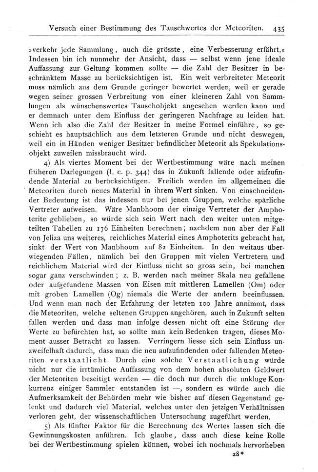 Versuch einer Bestimmung des Tauschwertes der Meteoriten