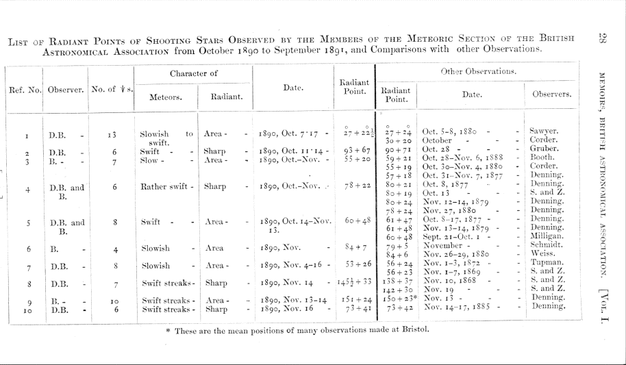 BAA Memoirs: reports of the Meteor Section (1891) Vol. I. Part II.