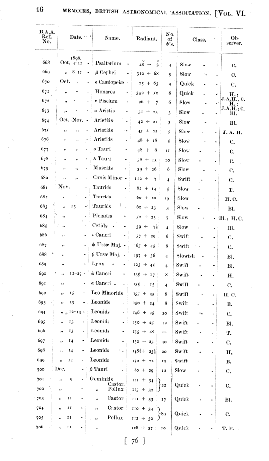 BAA Memoirs: reports of the Meteor Section (1896) Vol. VI, Part II.