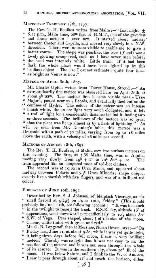 BAA Memoirs: reports of the Meteor Section (1897) Vol. VII, Part I.