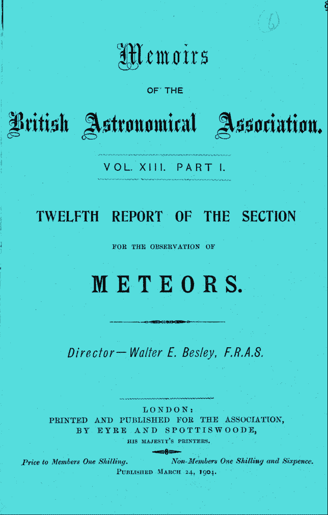 BAA Memoirs: reports of the Meteor Section (1903) Vol. XIII, Part I.