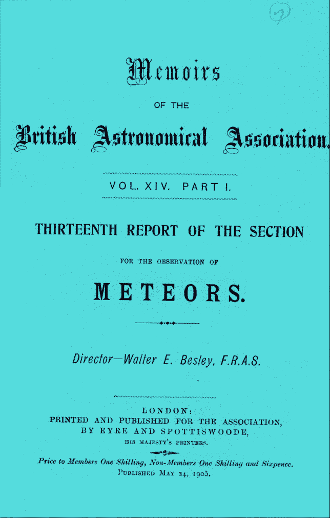 BAA Memoirs: reports of the Meteor Section (1904) Vol. XIV, Part I.