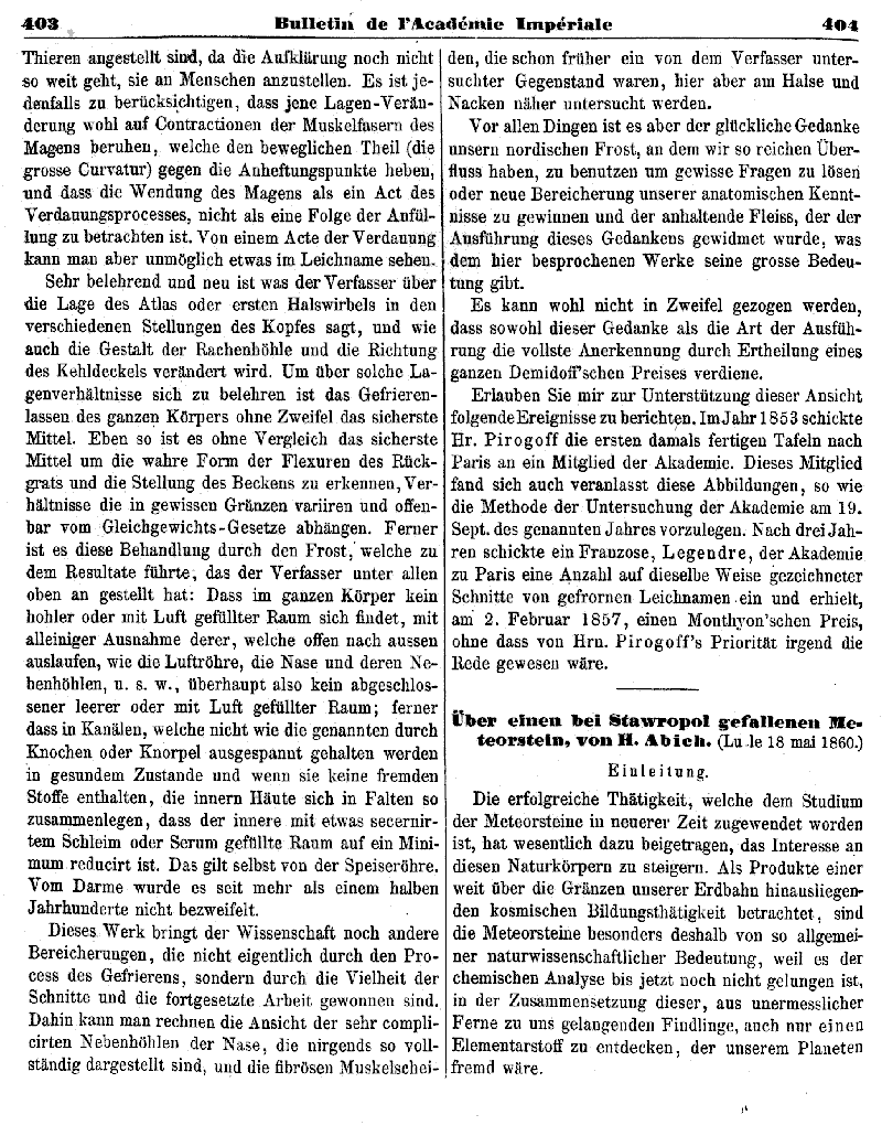Über einen bei Stawropol gefallenen Meteorstein, voh H. Abich.