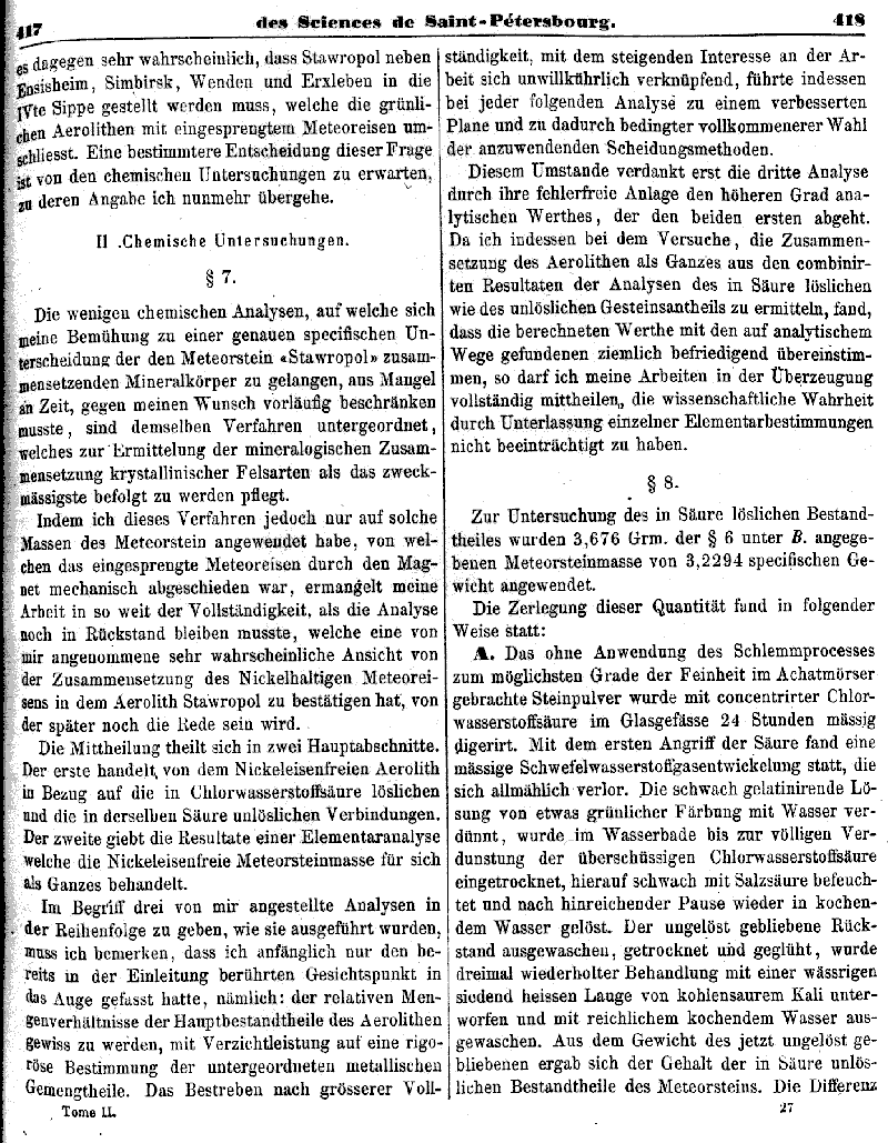 Über einen bei Stawropol gefallenen Meteorstein, voh H. Abich.