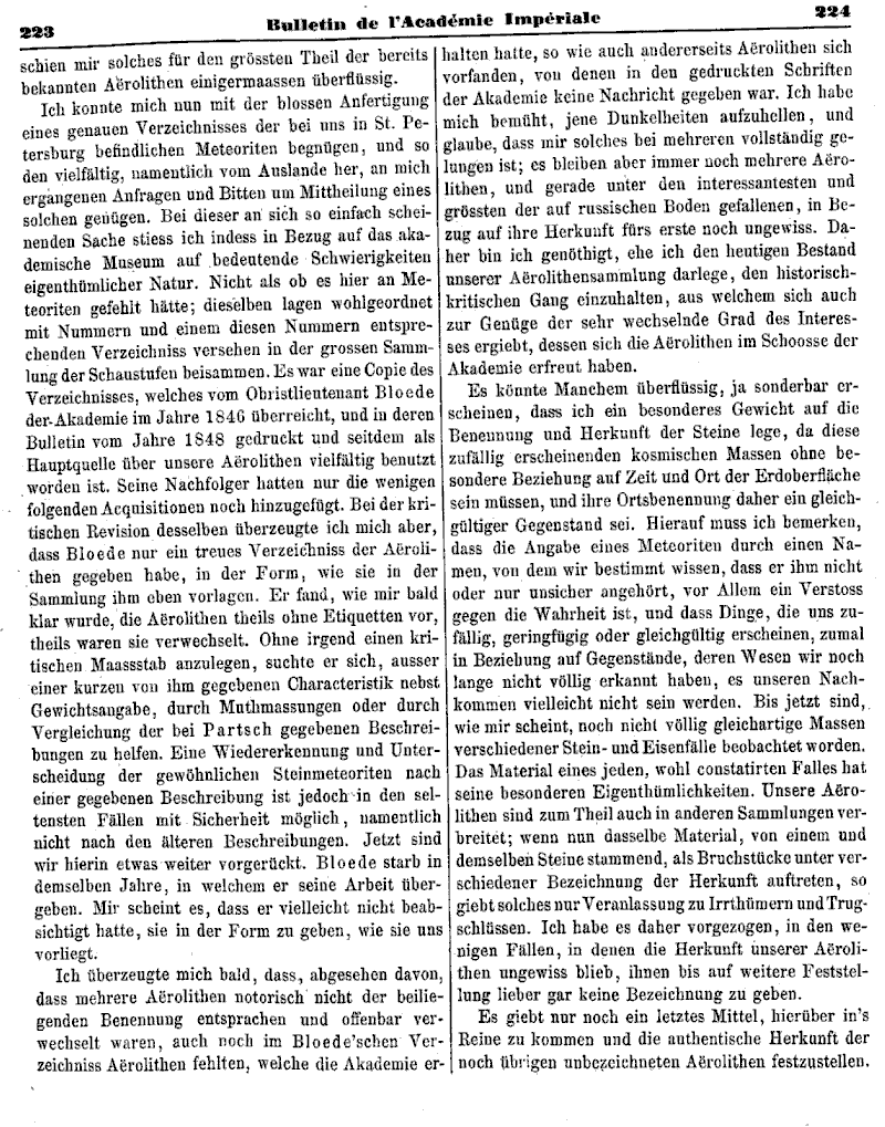 Kritische Übersicht der im Besitze der Kaiserlichen Akademie der Wissenschaften befindlichen Aërolithen, von Ad. Goebel.