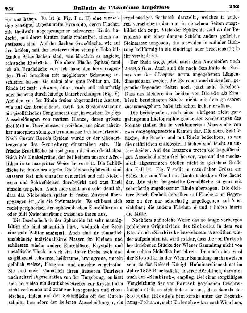 Kritische Übersicht der im Besitze der Kaiserlichen Akademie der Wissenschaften befindlichen Aërolithen, von Ad. Goebel.