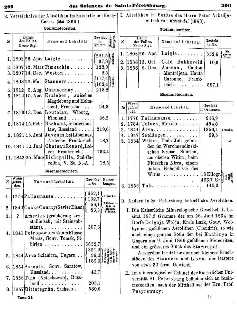 Kritische Übersicht der im Besitze der Kaiserlichen Akademie der Wissenschaften befindlichen Aërolithen, von Ad. Goebel.