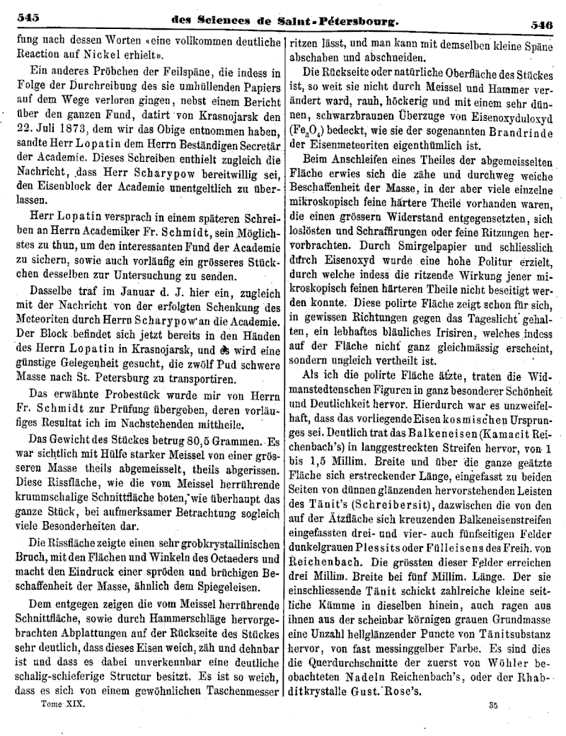 Bericht über einen neuen Eisenmeteoriten vom Ufer der Angara aus dem Gouv. Jenisseisk. Von Mag. Ad. Goebel