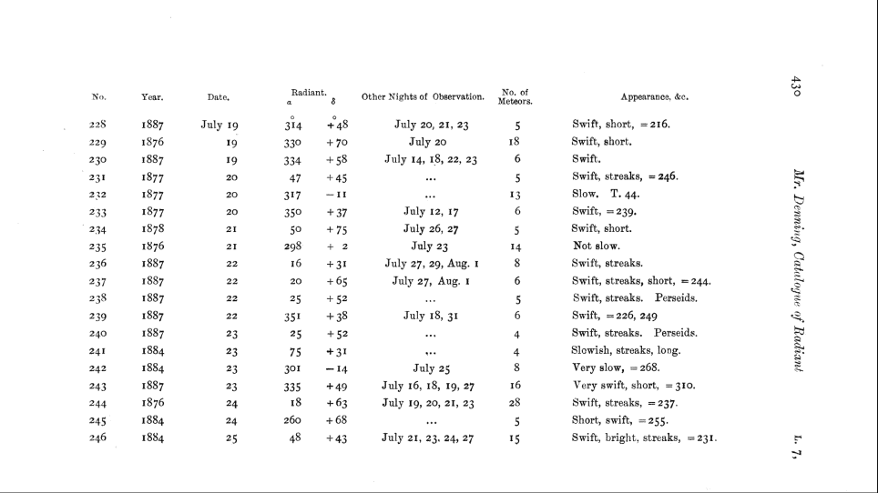 Catalogue of 918 radiant points of shooting stars observed at Bristol by W. F. Denning.