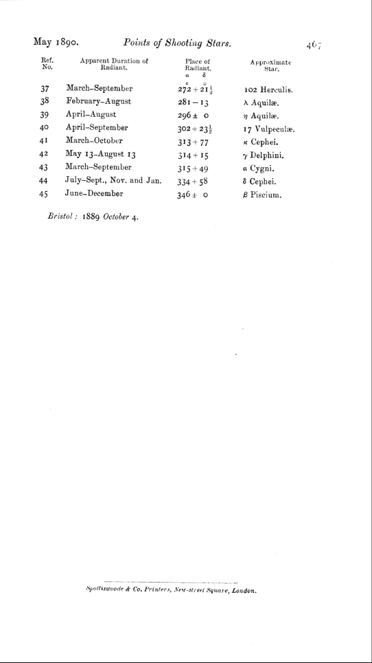 Catalogue of 918 radiant points of shooting stars observed at Bristol by W. F. Denning.