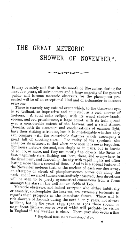 The Great Meteoric Shower of November by W. F. Denning. (1897)