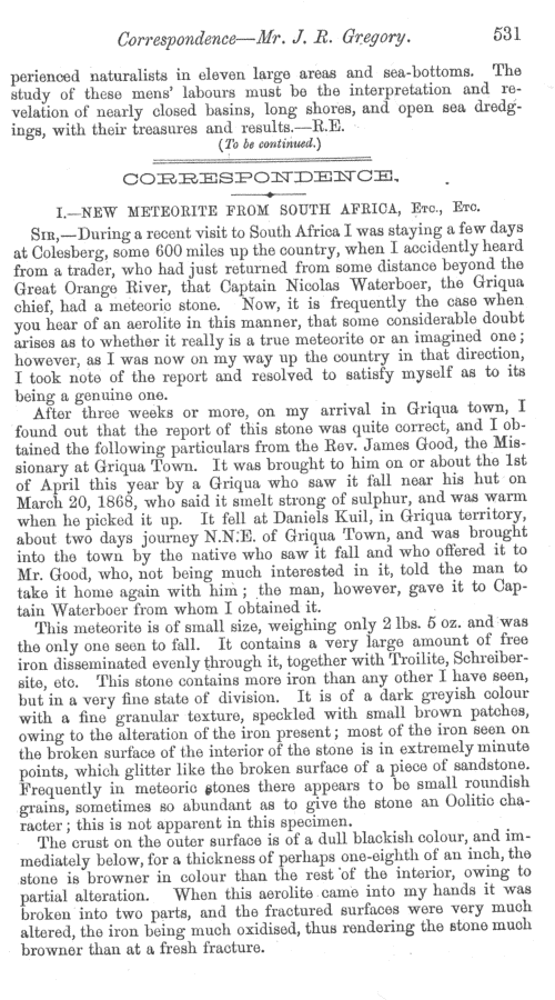 Meteoric iron from South Africa by J. R. Gregory