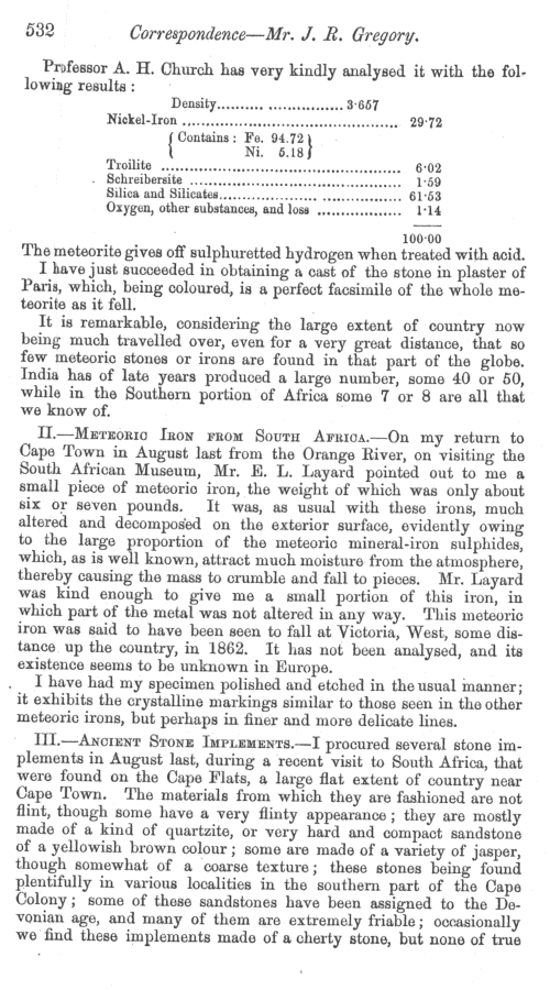 Meteoric iron from South Africa by J. R. Gregory