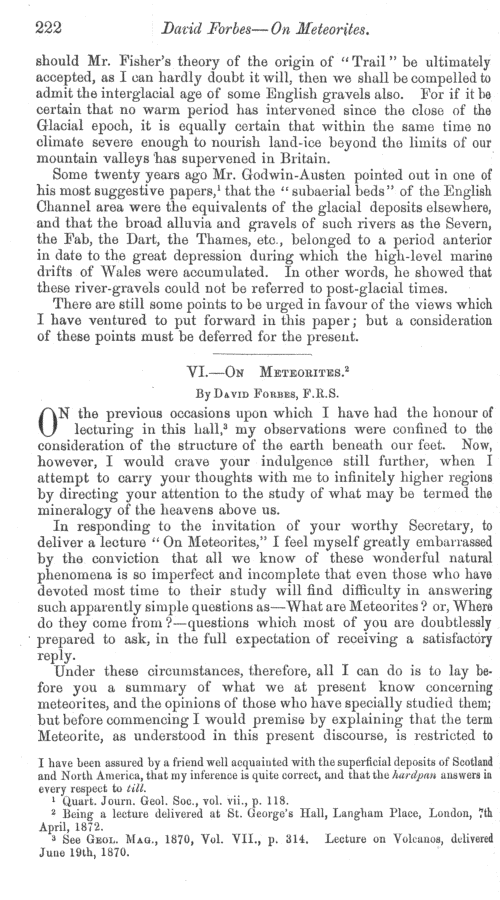 On meteorites by D. Forbes