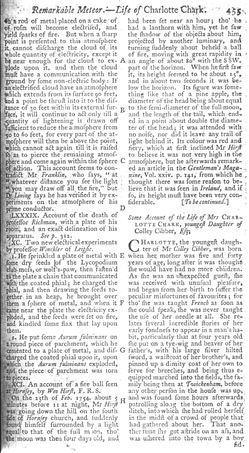 Fire-ball, at Hornsey, seen 25th Feb. 1754.