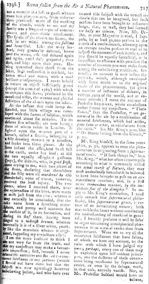 Stones fallen from the Air a Natural Phaenomenon, by W. Bingley. from The Gentleman's Magazine