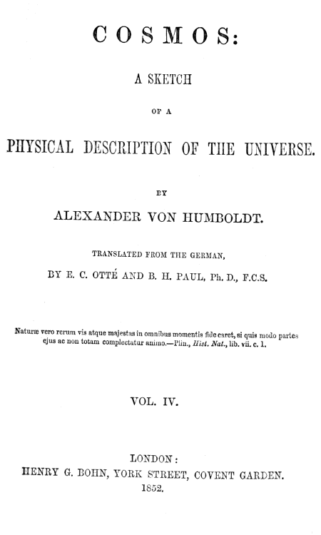 Extracts from COSMOS, volume 4, by Alexander von Humboldt