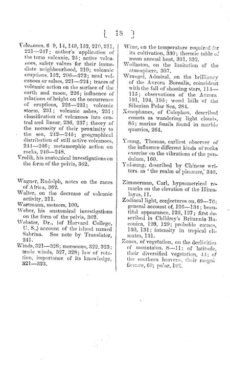 Index to Volume 1 of COSMOS, by Alexander von Humboldt