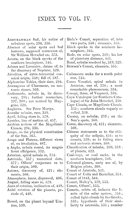 Index to Volume 4 of COSMOS, by Alexander von Humboldt
