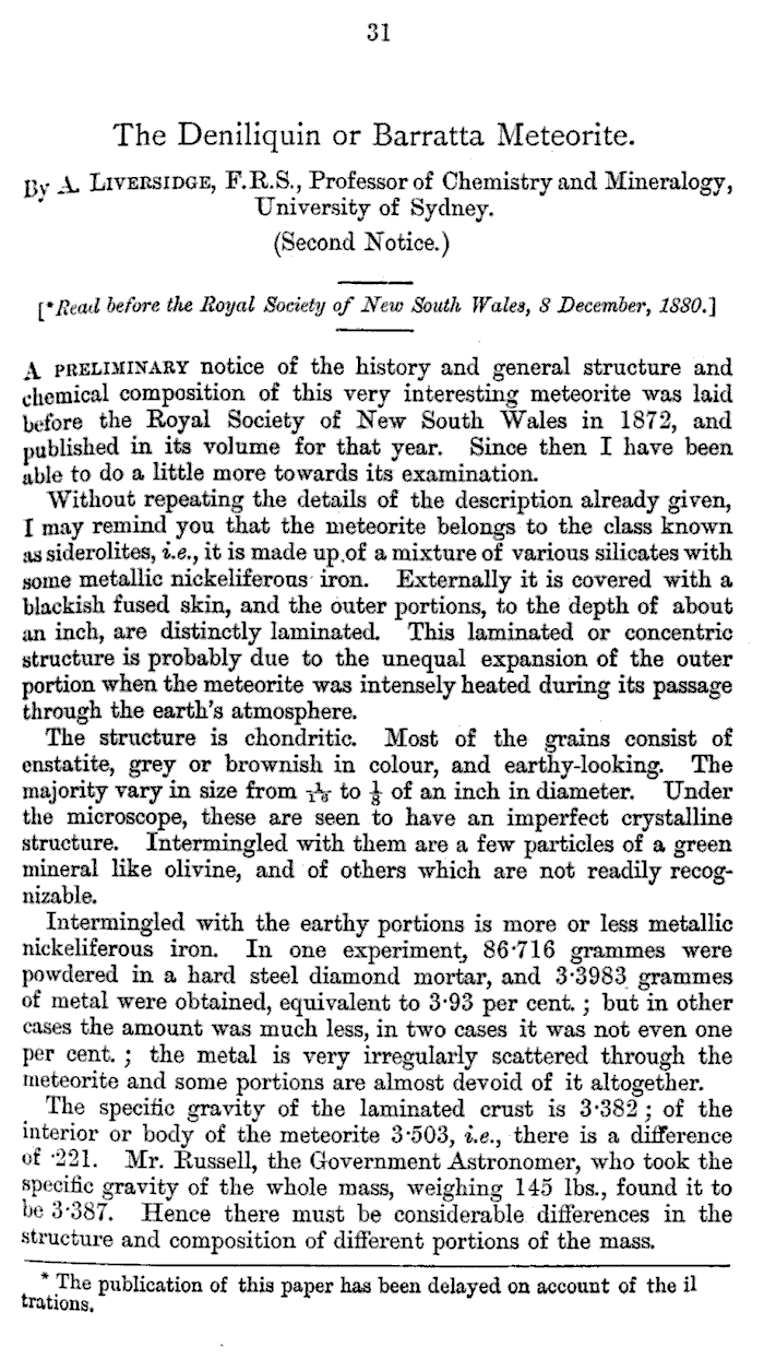 The Deniliquin or Barratta Meteorite by A. Liversidge
