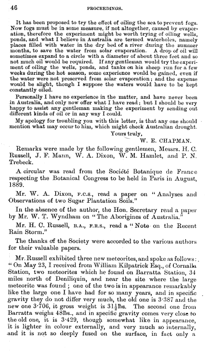 Mr Russell exhibited three new meteorites...