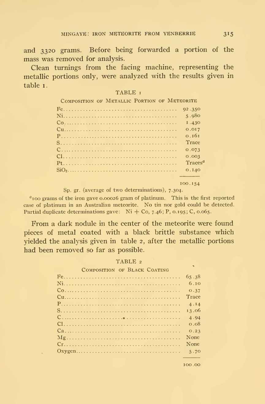 On an iron meteorite found at Yenberrie, Northern Territory of Australia by John C. H. Mingaye