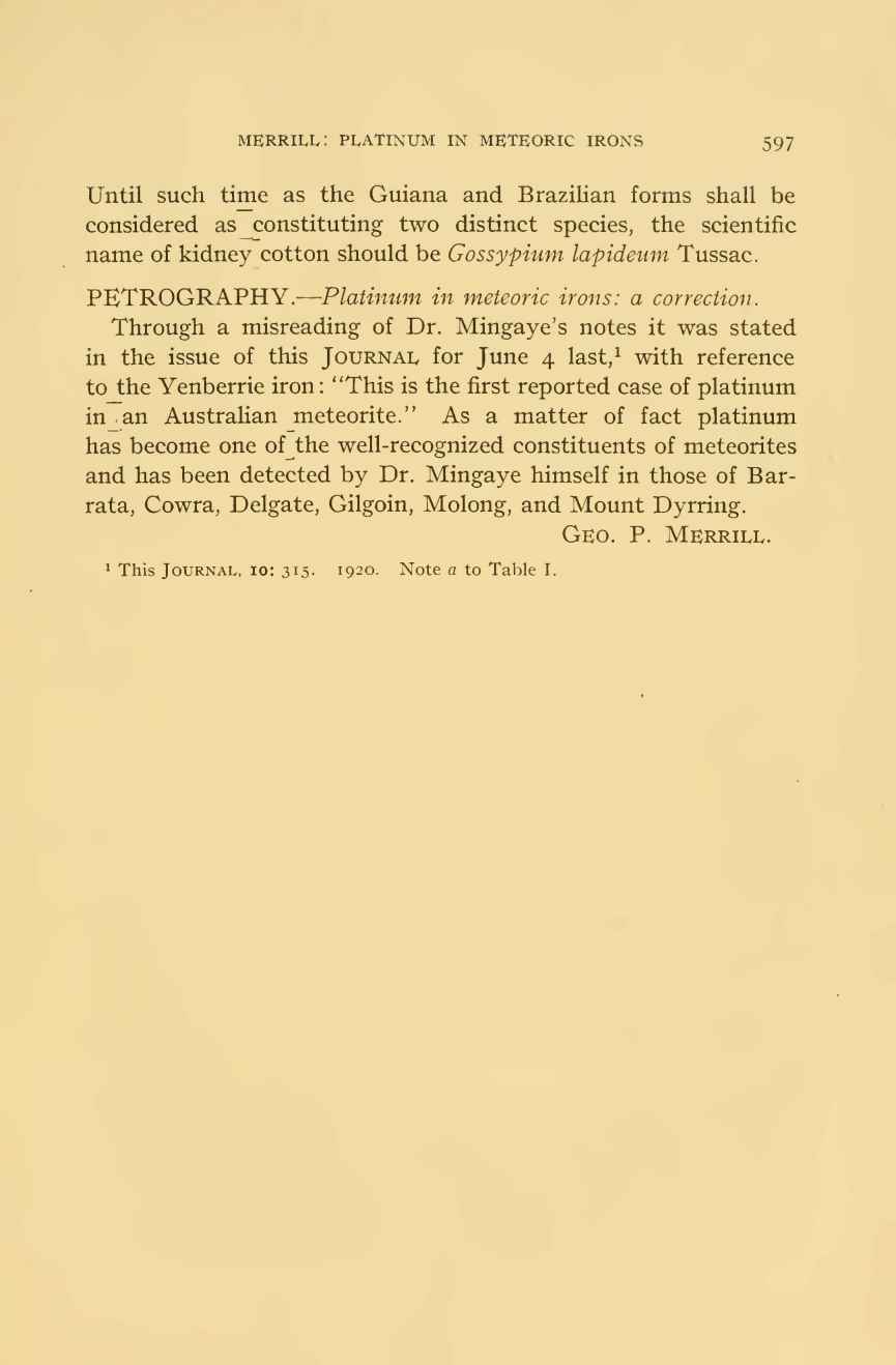 On an iron meteorite found at Yenberrie, Northern Territory of Australia by John C. H. Mingaye