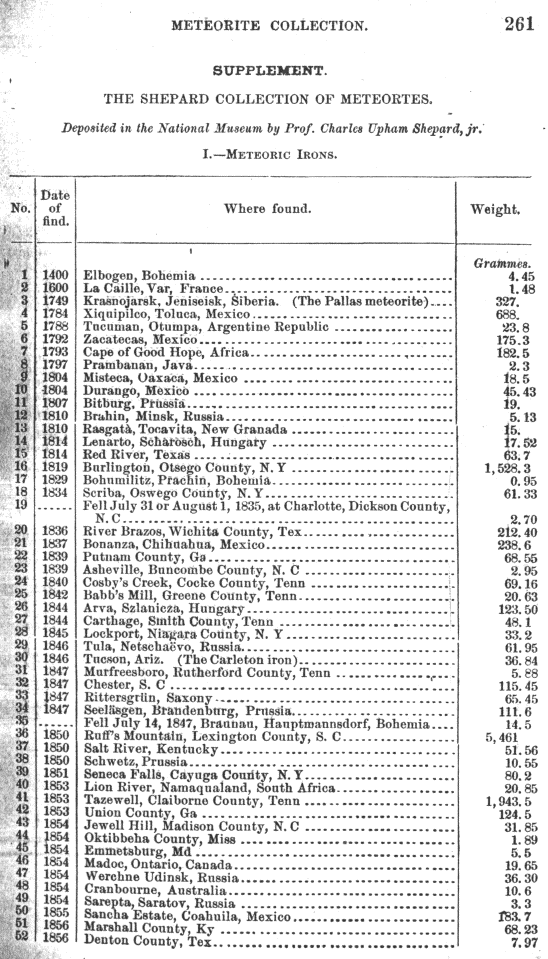 The meteorite collection in the U. S. National Museum; November 1, 1886. By F. W. Clarke