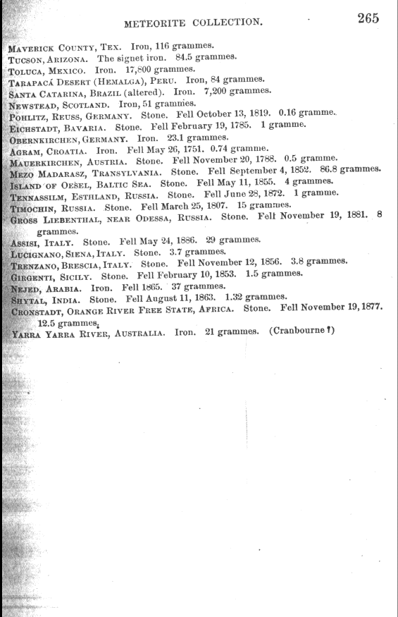 The meteorite collection in the U. S. National Museum; November 1, 1886. By F. W. Clarke