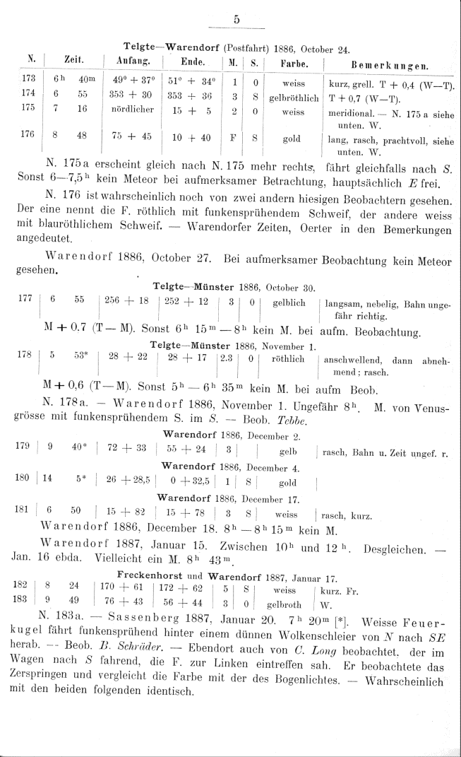 Zweites Verzeichniss von Meteorbahnen. Herausgegeben von J. Plassmann. (1891)